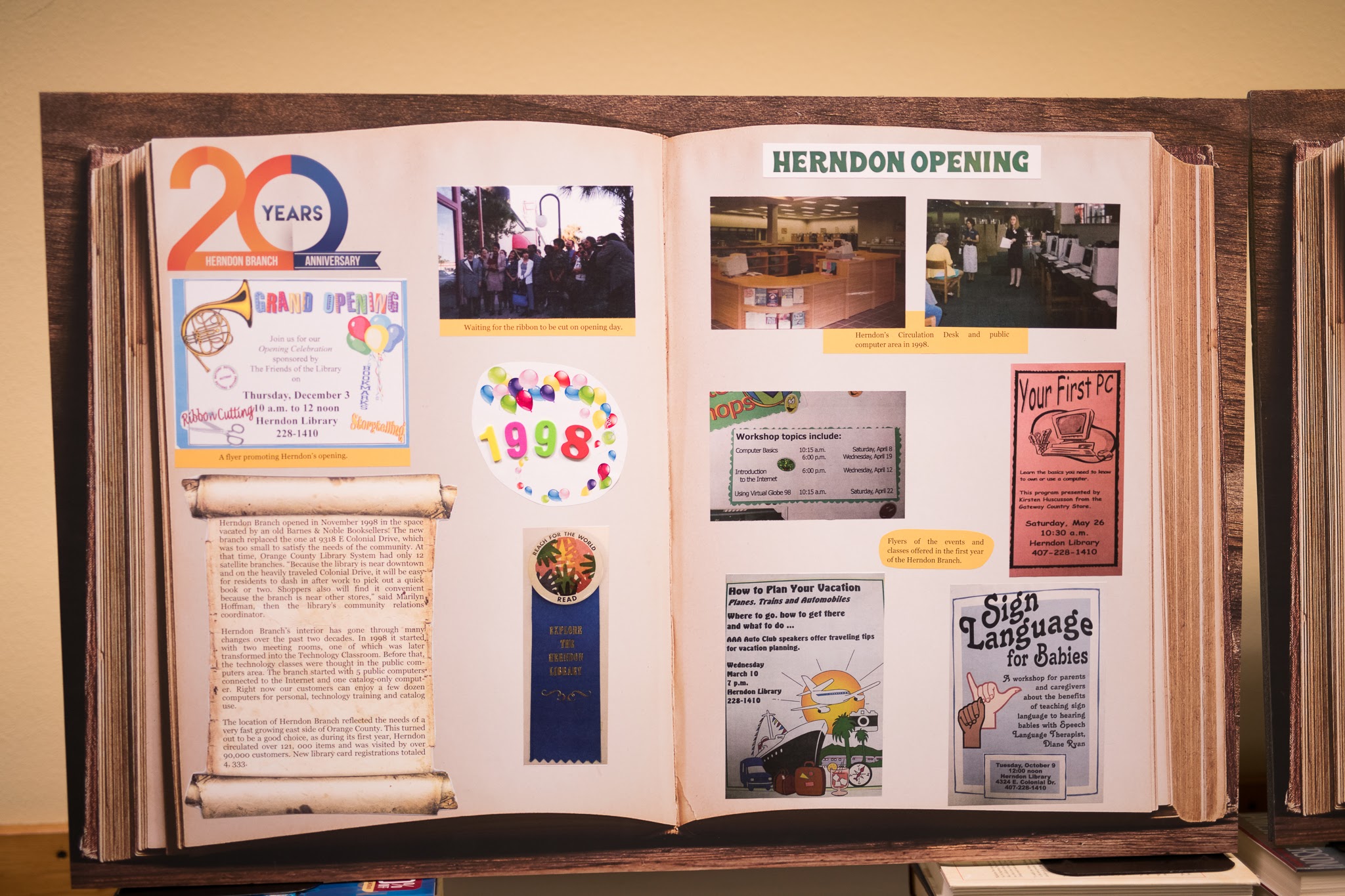 The Herndon Branch originally opened its doors to the public on November 23, 1998. It is a leased facility in the Colonial Promenade shopping center on East Colonial Drive. Previous occupants in the building were Barnes and Noble book store and T.J. Maxx. Read more about the first year of the Herndon Branch.
