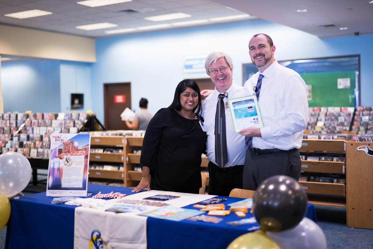 In 2014, the Orlando Sentinel launched a Twitter campaign with the hashtag #orlandoing. Herndon circulation clerk, Jemimah Salim and Customer Service Lead (left), Betsy Nieves (right), celebrated with a display featuring books of the City Beautiful. Jemimah started with the library in the Community Relations department in 1996 and worked at Herndon until her passing in 2019. Betsy Nieves started as a Shelving Clerk at the East Orange Branch in 1995 and was with the Herndon Branch until her retirement in 2020.